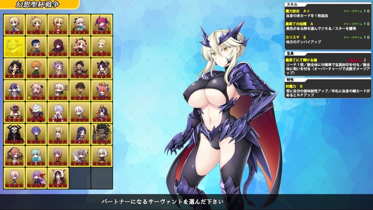 幻想聖杯戦争では、マスターを抜いた男女38名×難易度4種分のステージが用意されています。