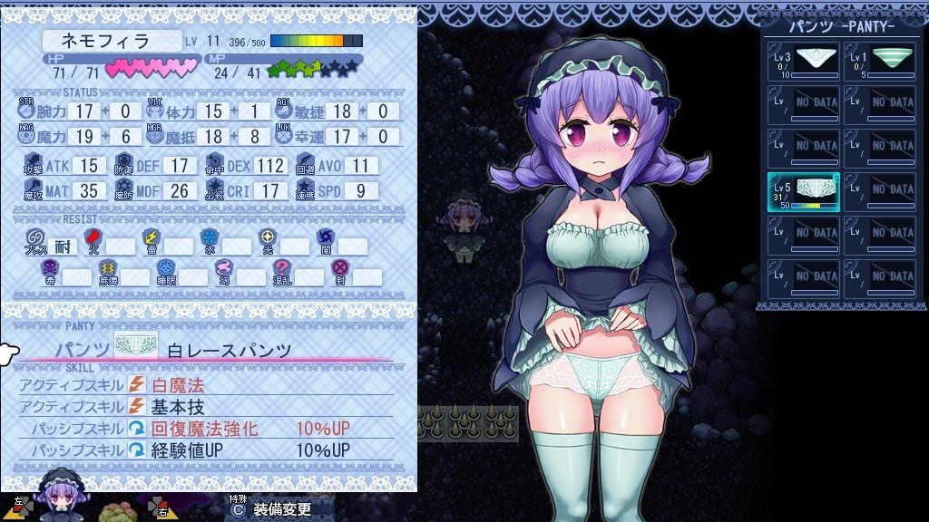 ネモフィラは、パンツを変更することで物理系、魔法系といったいわゆるジョブチェンジが可能です。