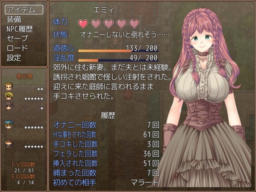 少し話したように、NPCとの段階エロが多いため、各々に羞恥から始まり淫乱に至るまでの過程を楽しめます。