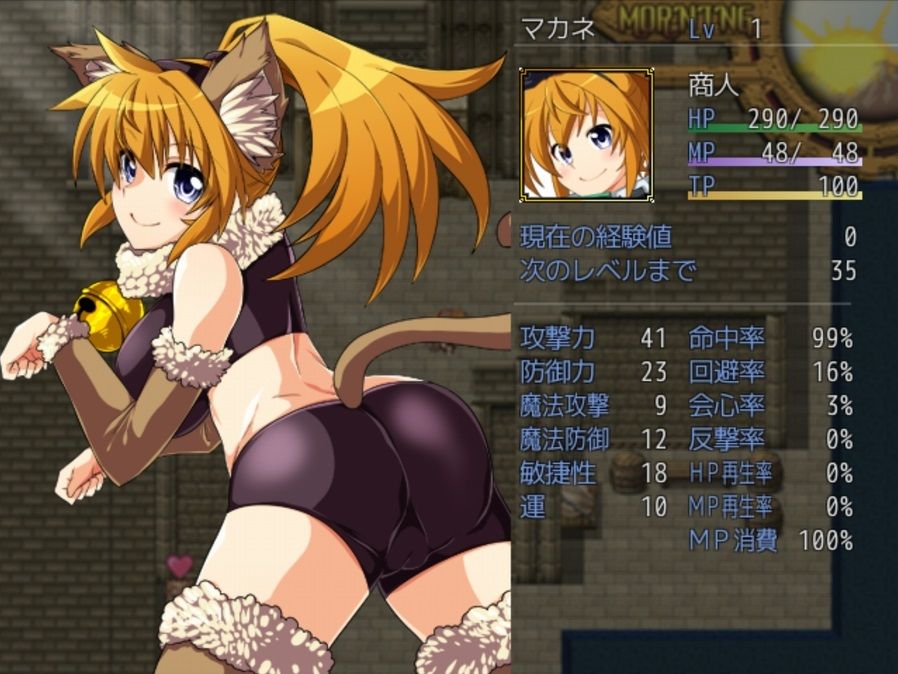 更に、マカネと仲間たちには着せ替え衣装が用意され、会話と戦闘立ち絵がそれぞれ変化します。