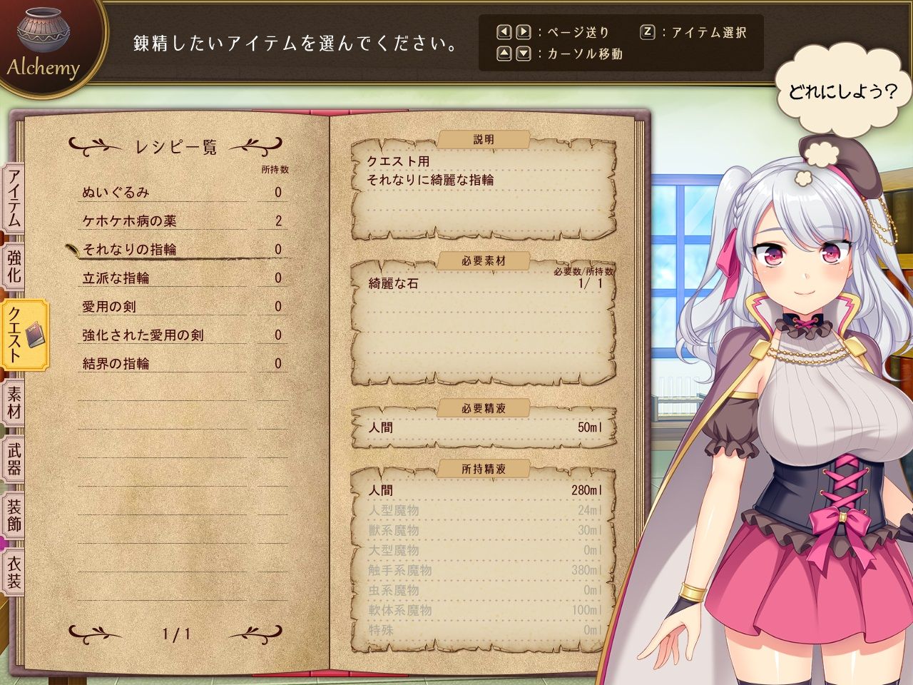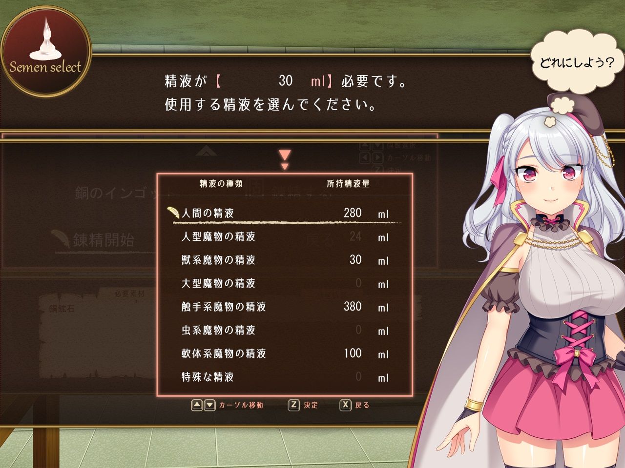 ◆集めた精液を使って、アイテムや武器の生成から服の強化まで出来ちゃう錬精システム!