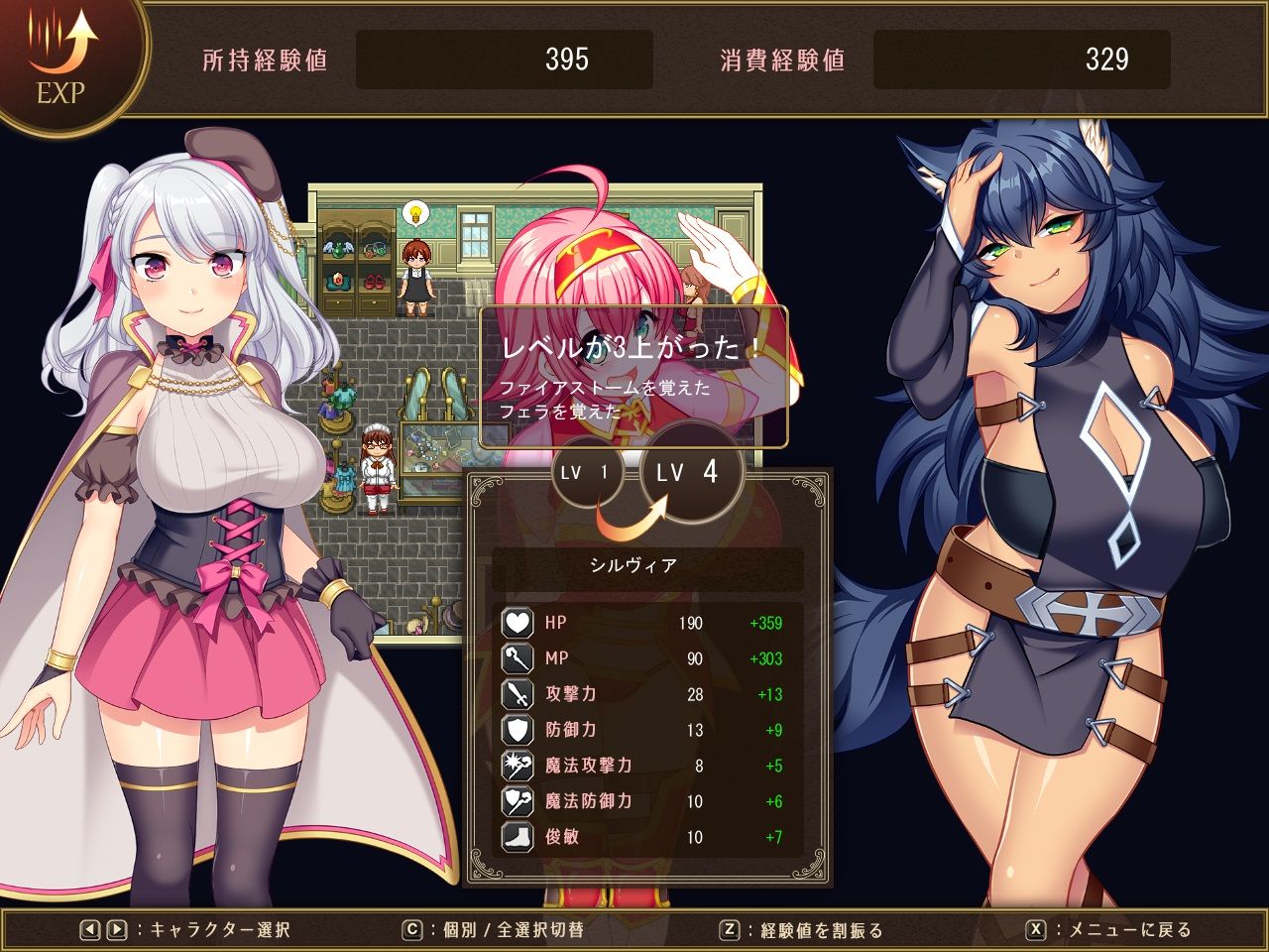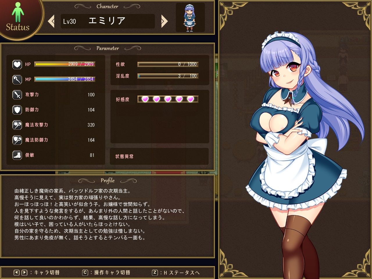 戦闘に関するステータスよりも、エッチなステータスの方が多いのが特徴的です。