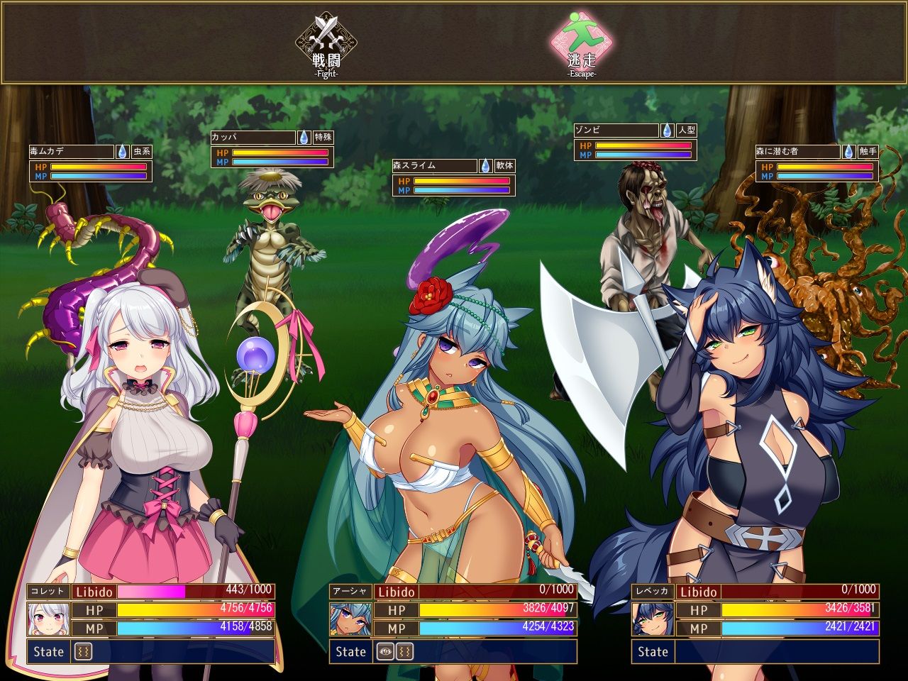 状態異常で表情が変化したり、HP残量で服破け、そしてセクハラ攻撃で立ち絵が変化します。