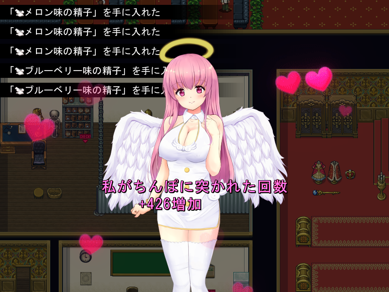 | ▼エッチすると信仰が増えてドンドン強くなる! | ▼精子はフルーツ味に変化!飲むとステータスUP! | ||