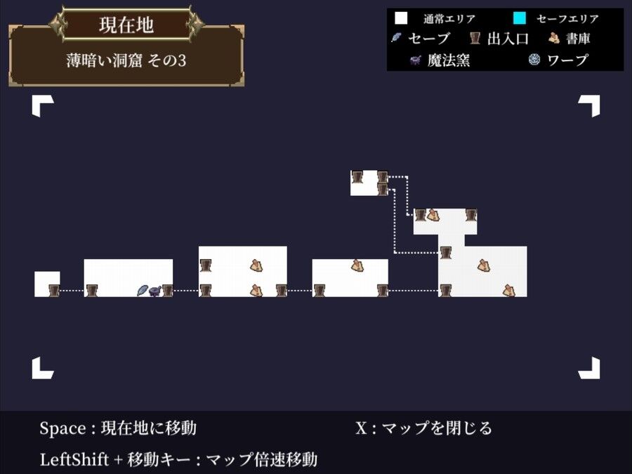 迷子にならぬように小まめなマップ確認と、どこが「通行止め」だったのか、覚えておくことが重要です。