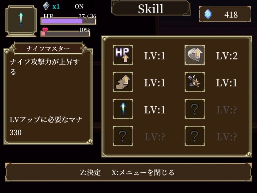 ステータスや各攻撃技は、手に入れたマナを消費することで強化することができます。
