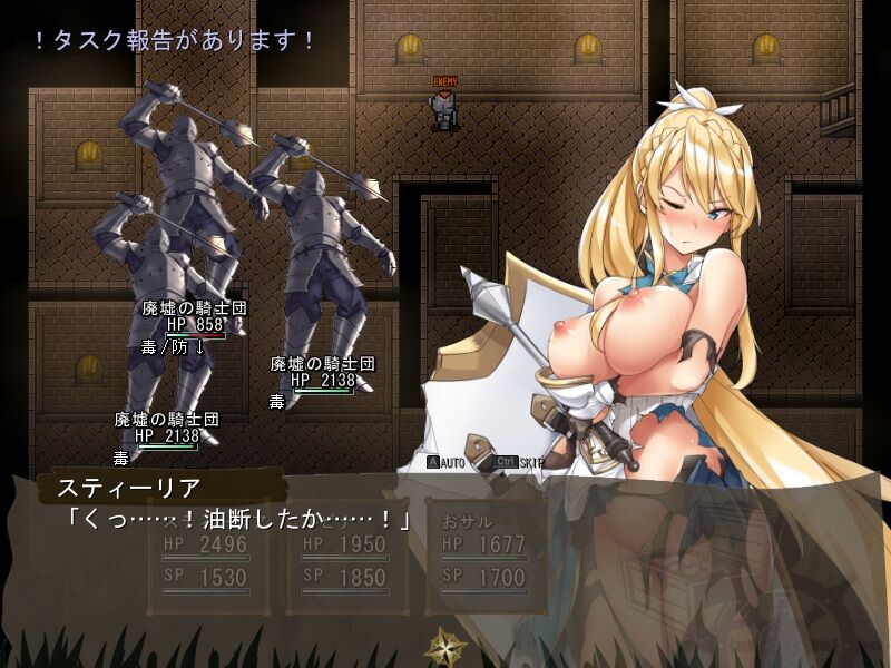 | ▼戦闘もアニメーションでぬるぬる動く! そしてHPが減少すると衣服が破けてしまう! | |||