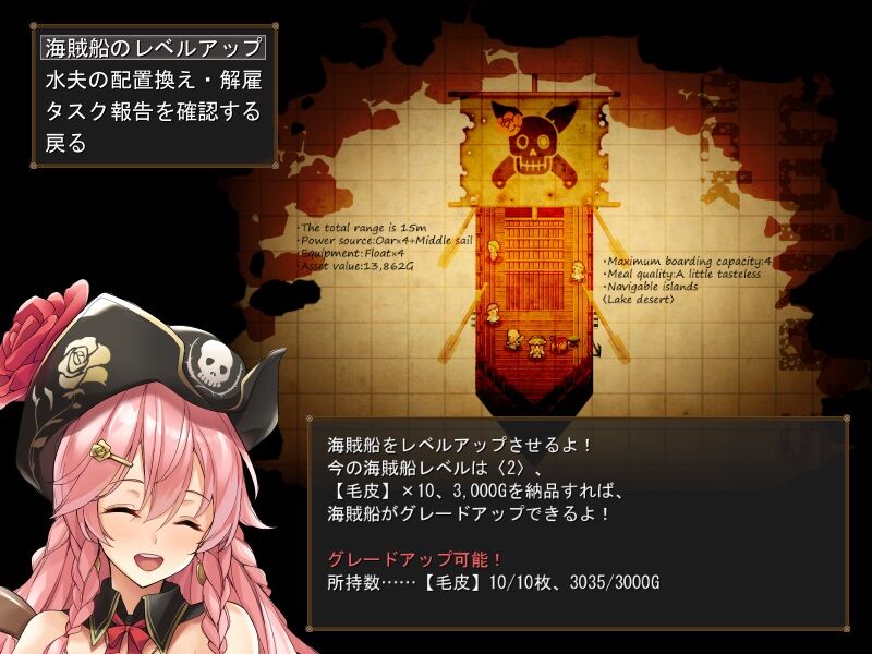 | ▼パイレーツファンタジーの雰囲気が漂う地図! / 賞金首を倒して金策!水夫を雇って海賊団を強化! | |||