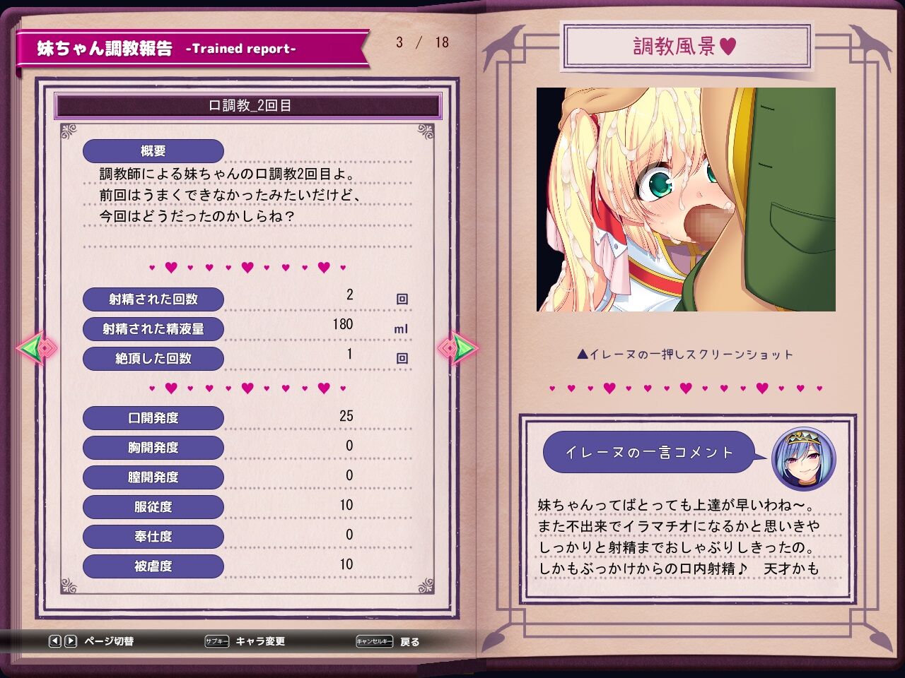 | ▼ノルマを達成しないと妹のルミエールが調教進む… | ▼調教の様子は『エッチな日記帳』に記録されます♥ | ||
