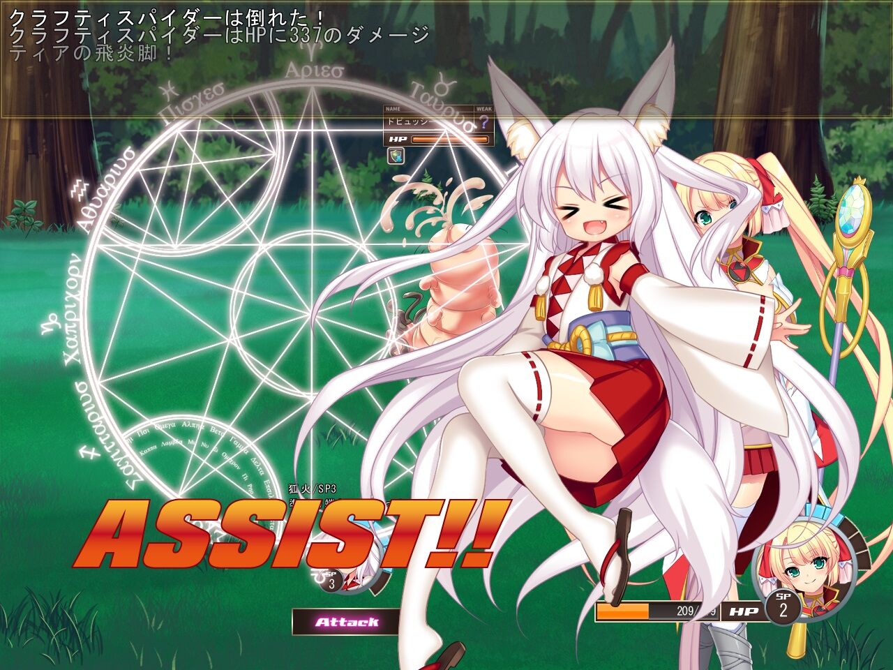 | ▼「ティア&パートナー」のターン制形式バトル! | ▼ターン毎に回復するSPを消費してアシスト発生! | ||