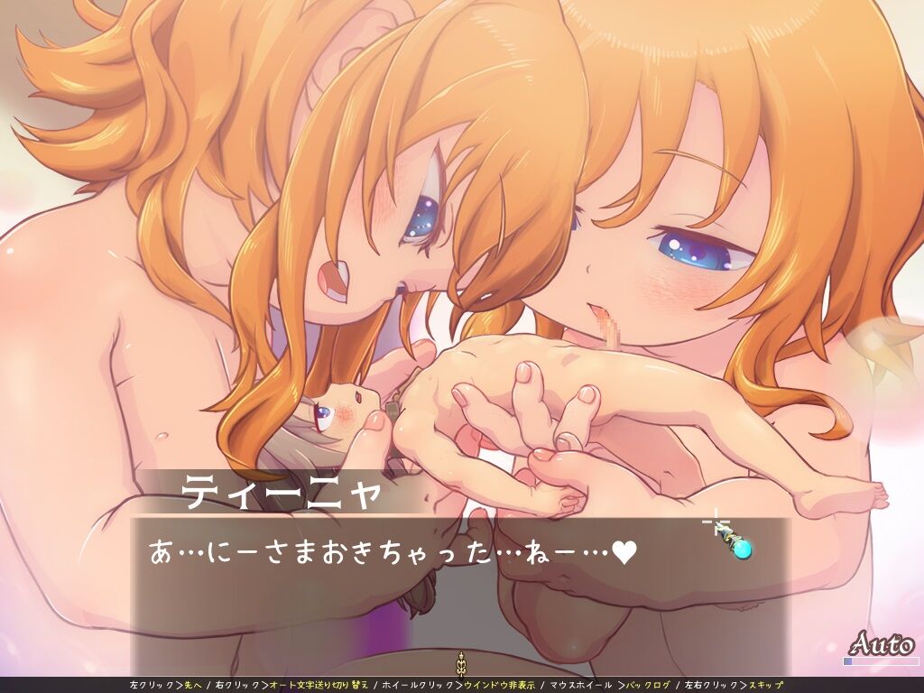 「分裂した2人のティーニャに挟まれたアルくん。ペロペロされて後は、ゴックン♥されちゃいます」