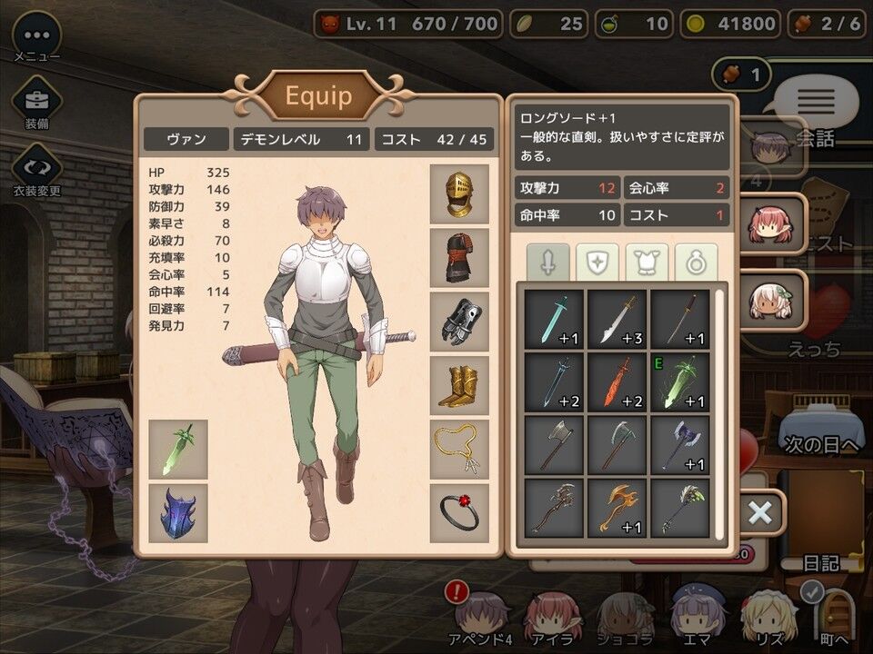 戦闘は自動で処理されます。事前に準備しておくのことは、クエストで入手できる武具を装備したり、