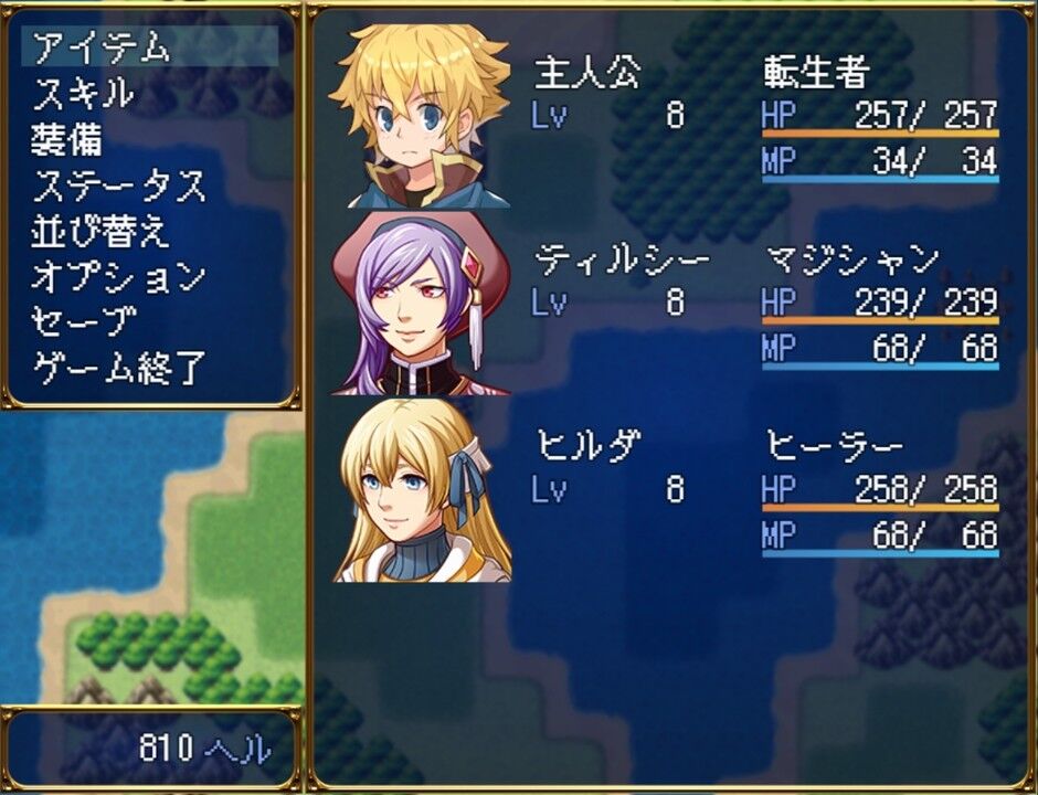 また、【パーティ構成】は決まっており、主人公とNPCを2人加えたスリーマンセルになります。