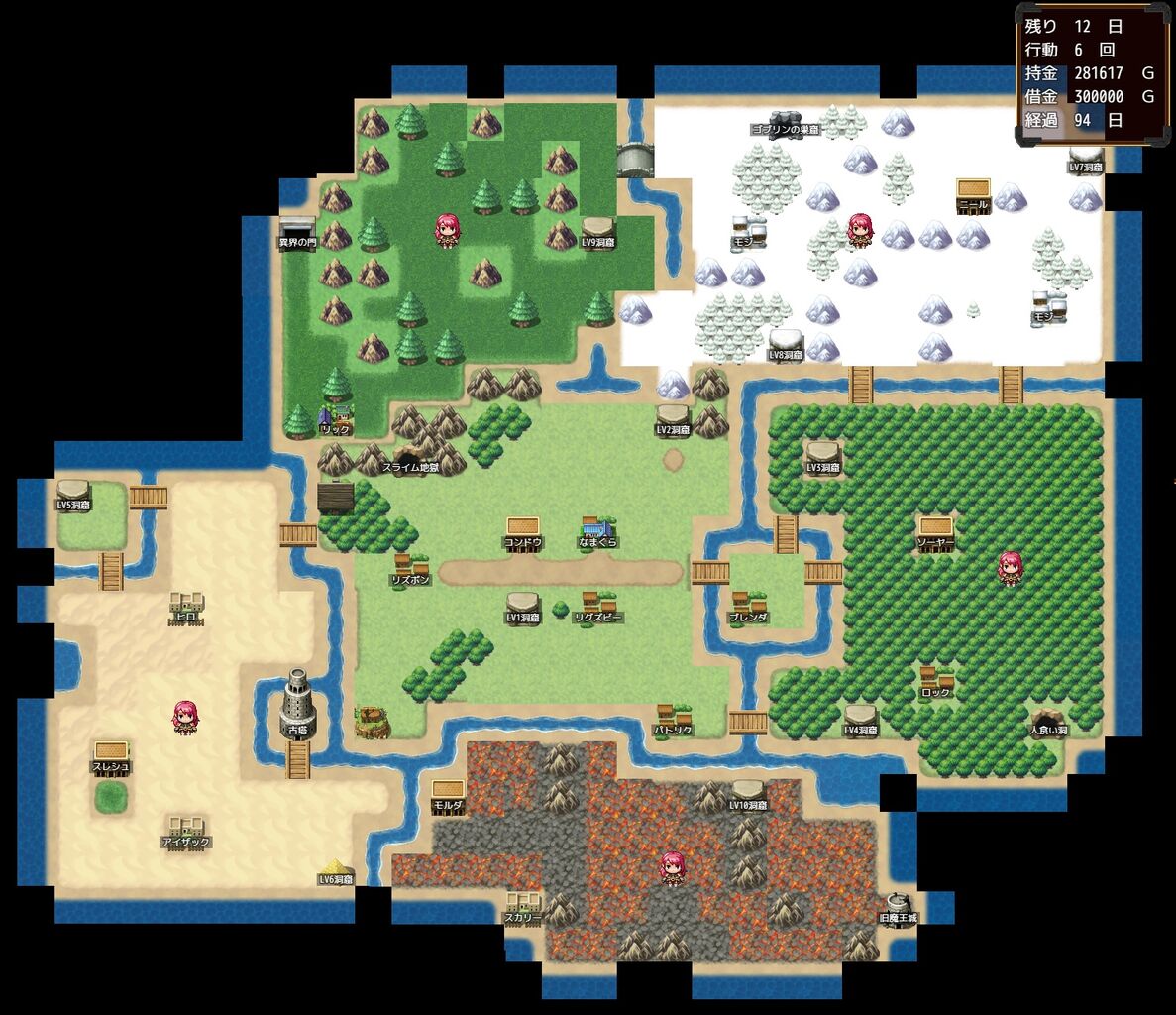 後、行動回数残り1にして洞窟探索すると階層をまたがないので、ボスがいるダンジョンだとずっと探索してられる。とは言っても、回数は普通に減るから日にちは経過するけど。異界の門での装備集めに最適。