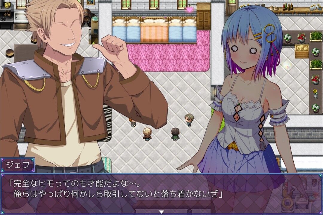 | ▼ヒモを養って貴族街に豪邸を購入!? | ▼着せ替え要素あり!酒場やバーでバイトしよう! |