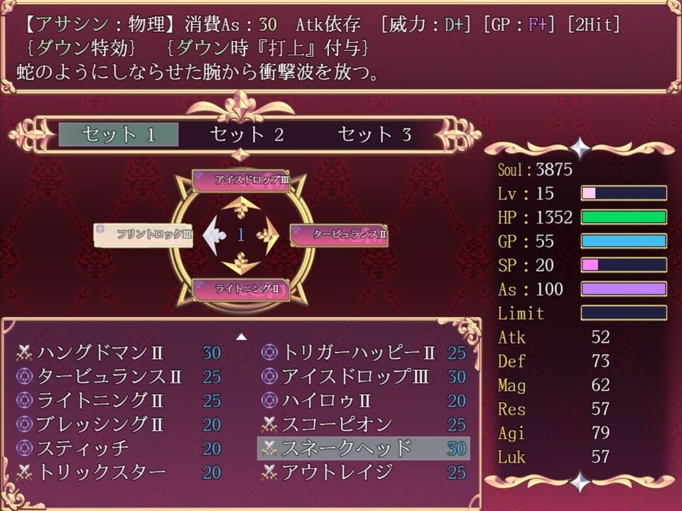 判断しやすかったです。攻撃スキルに関しても、「威力・GP・ヒット」の大きく3つの特徴のため、
