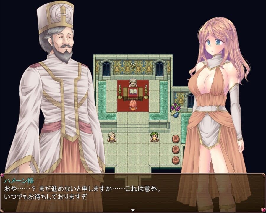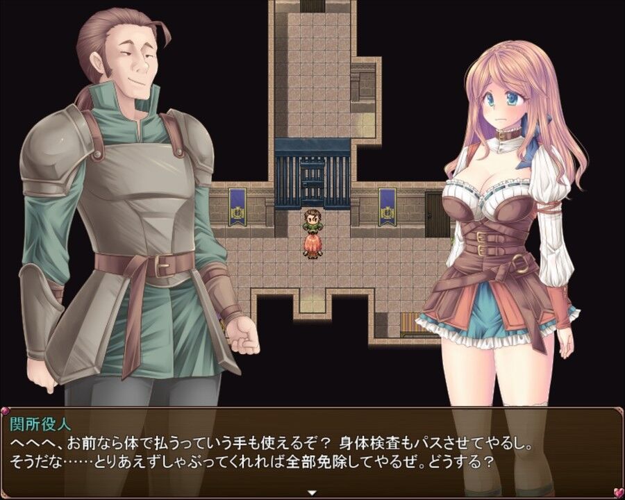 | ▼行く手を阻むいじわるな男・・・ | ▼少女のえっちな冒険セクハラRPG | ||