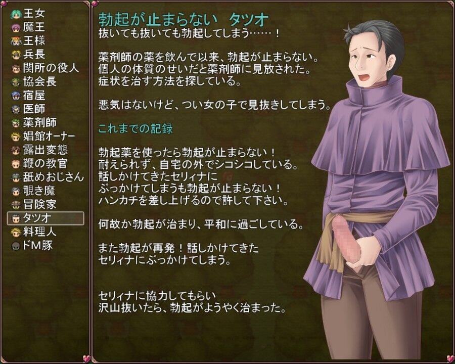 | ▼多彩なNPC(変態)たちがセリィナの前に現れる! エッチイベント盛り沢山で寄り道を楽しもう! | |||
