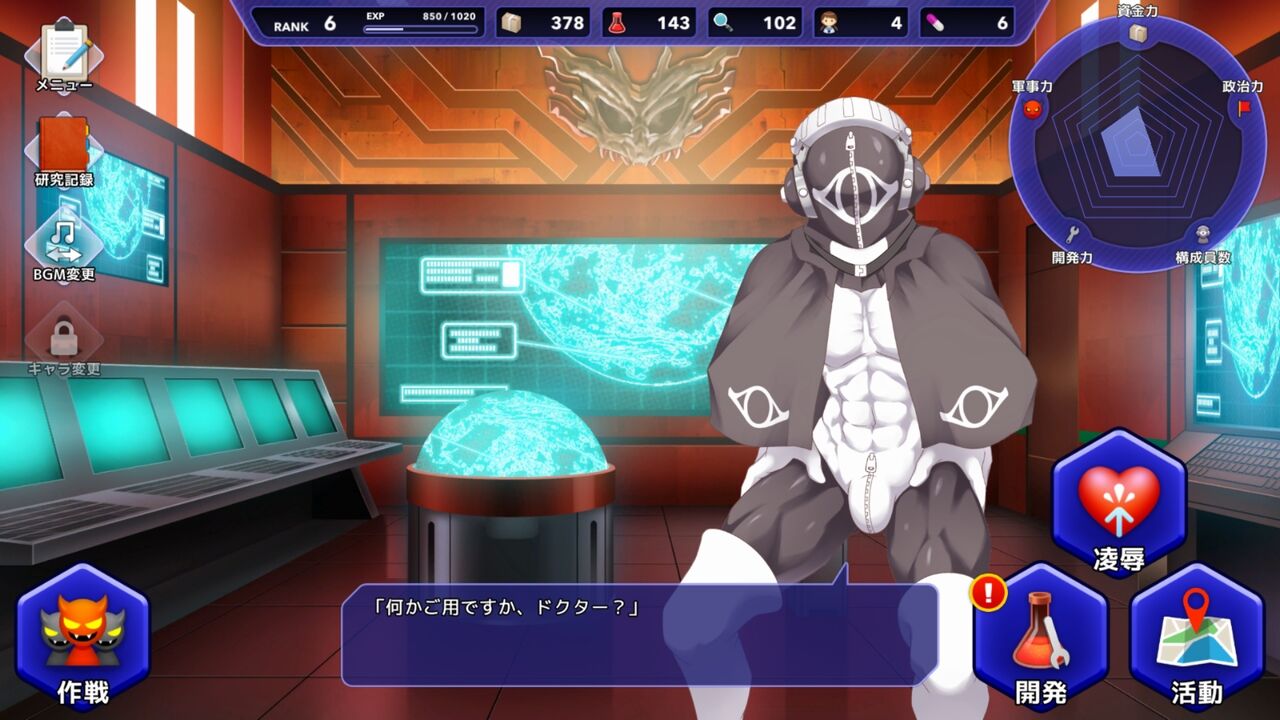 プレイヤーは、組織の幹部『ドクター』を操作し、怪人や兵器を開発しながら活動を指示します。