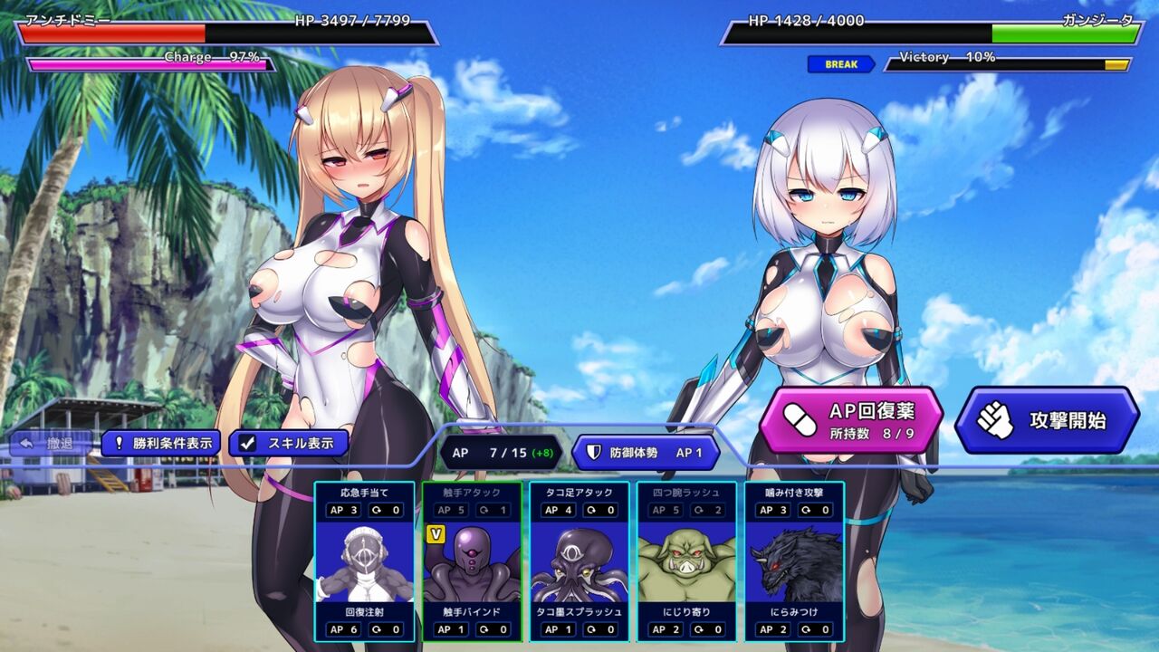倒すのではなく、「特殊な勝利条件」を満たすことでクリアとなります。あくまで凌辱が目的なのだ!