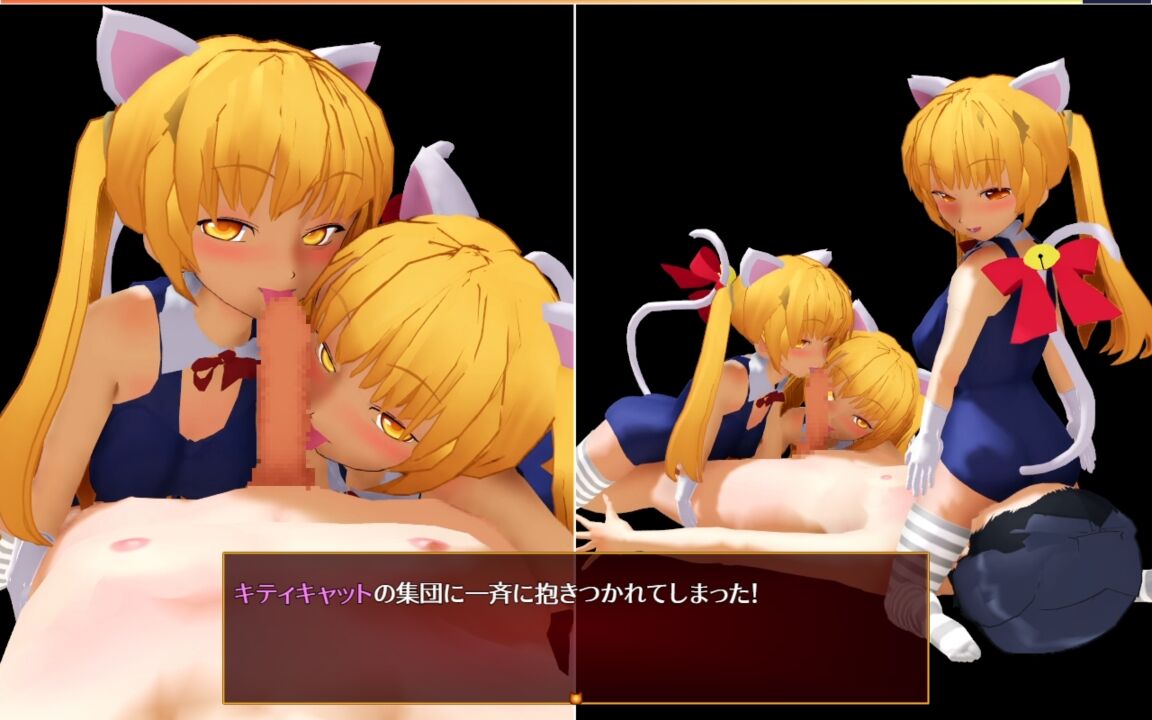 | キティキャット | 押し倒し(顔面騎乗)、ダブルフェラ(2人フェラ、1人顔面騎乗) | ねこ耳、スク水、縞々ソックス、ロリ体型 |