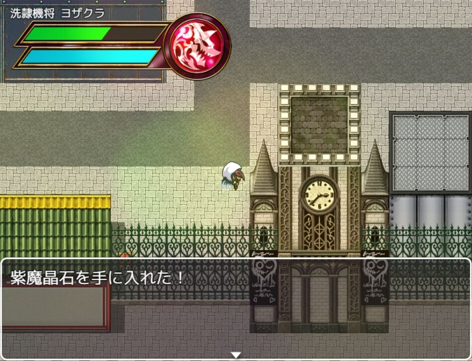 前半では敵を避けて東を目指します。無理に戦闘しなくてOKです。 後半は、地下に降りたら、水晶を全て破壊して北西に進みしょう。 前半の時計台の右上の木の陰に『紫魔晶石』、後半の南に『紫魔晶石』 |