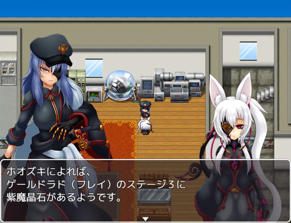 《ヨザクラ》単独行動中は、素直に指示に従って地下から脱出します。 合流後、水晶を全て破壊し、入口付近の部屋に入ります。南西に『紫魔晶石』 |