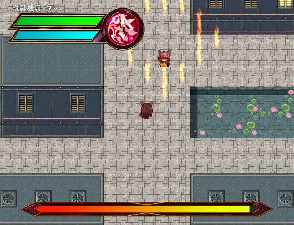 《エリュー》戦です。常に火の玉が四方から接近してきます。 必殺で弱体化されますが、ノックバックで防げるので常に攻撃を当て続けましょう。 |