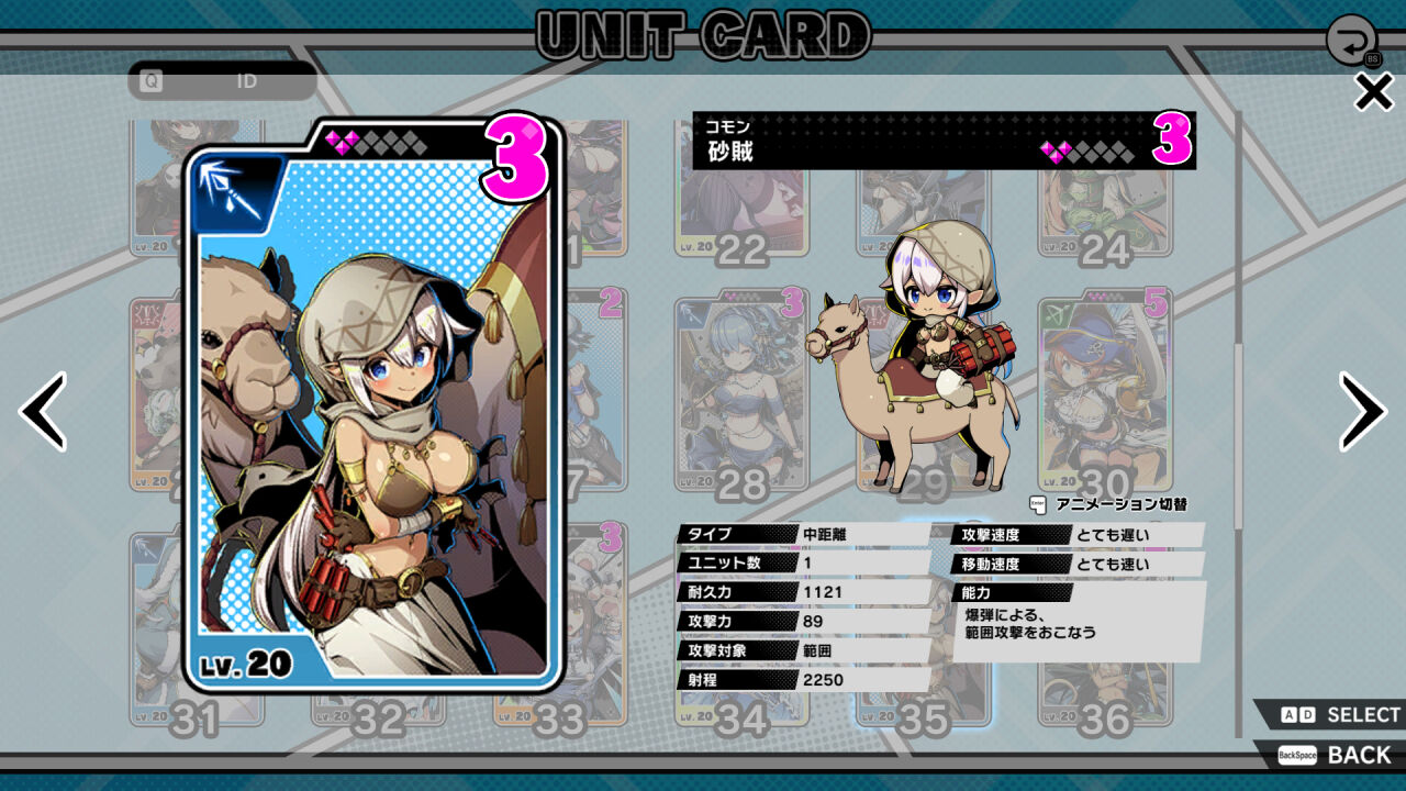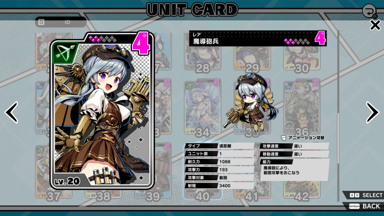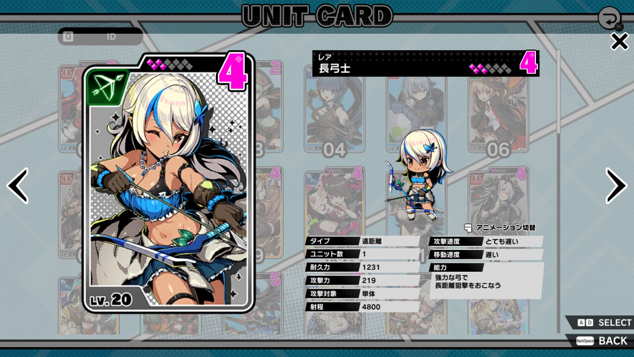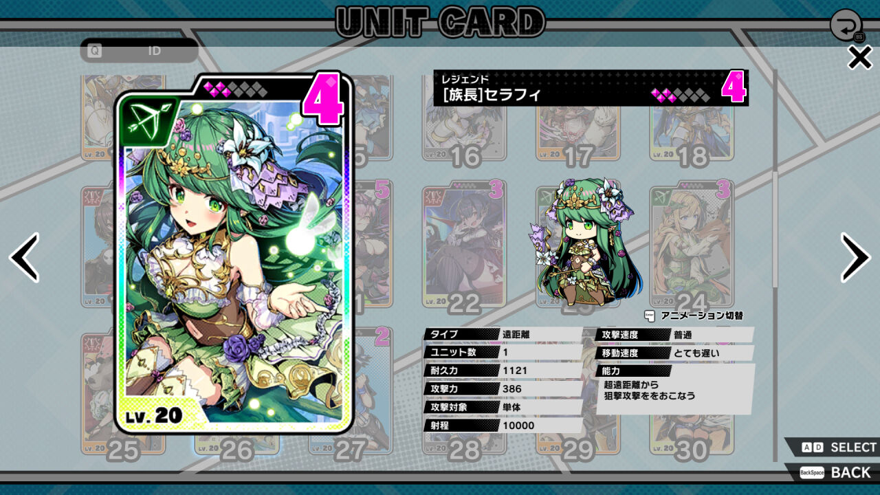 | 40 | レア | 弓 | 遠距離 | 1088 | 範囲 | 遅い |