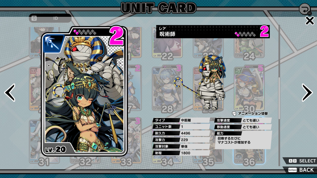 | 44 | レア | 剣 | 近距離 | 5676 | 単体 | とても遅い | 複数体召喚される |