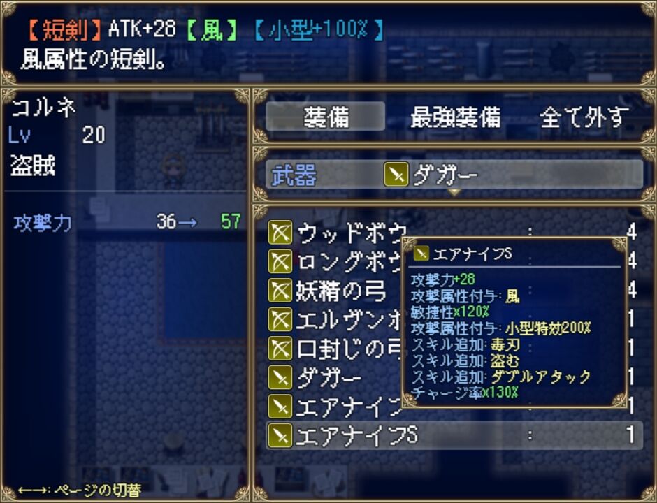 また、戦闘中でも武器の変更は可能です。大地の剣でスロウにしたら主力武器に持ち替えるなど、