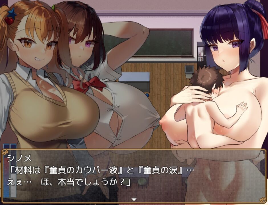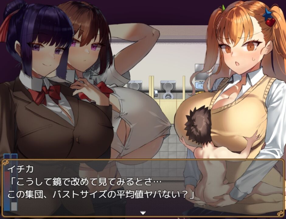学校の資料室の掃除をしていた《主人公》と、3人の爆乳女子《イチカ》《シノメ》《レナ》は、