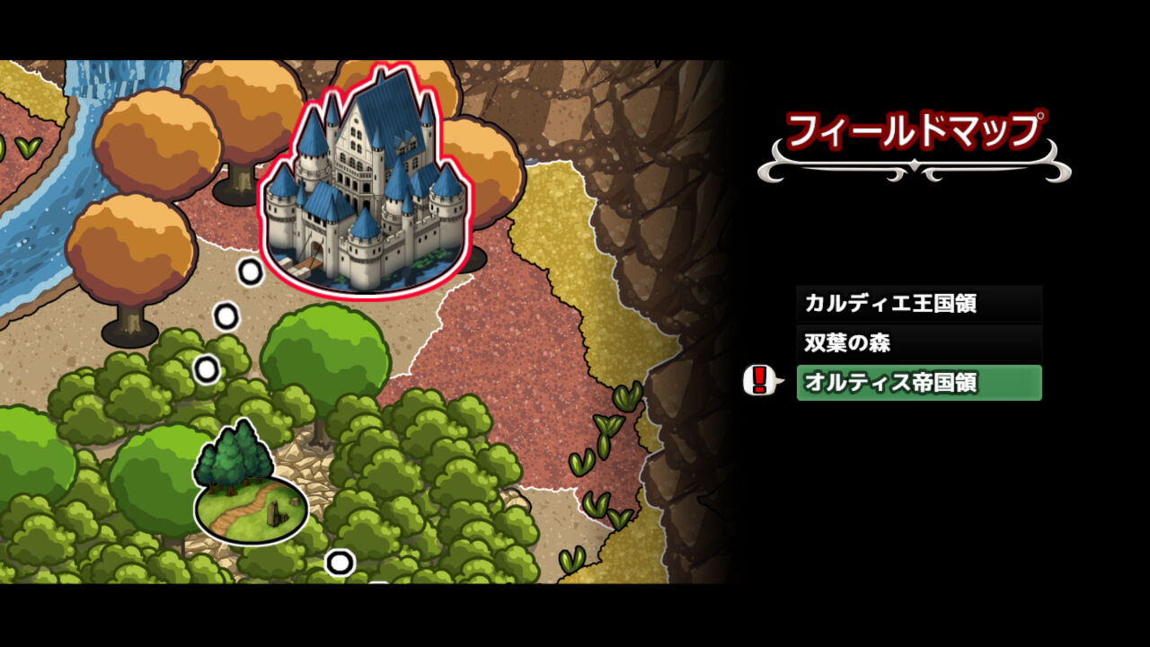 フィールドマップに出たら、《オルティス帝国領》に入りましょう。