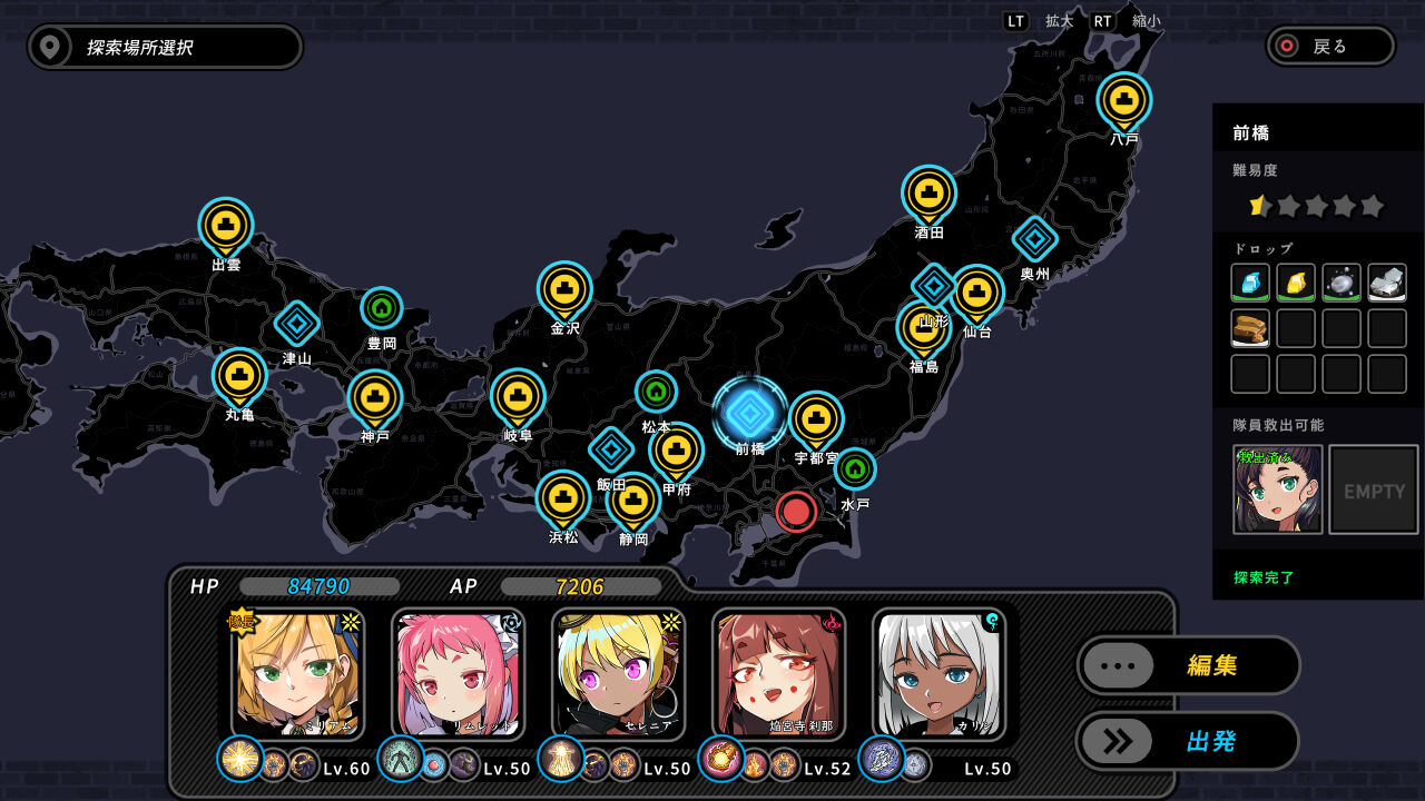 遠征先には難易度が記されており、基本的にはこの順序通りに進めていけばOKです。