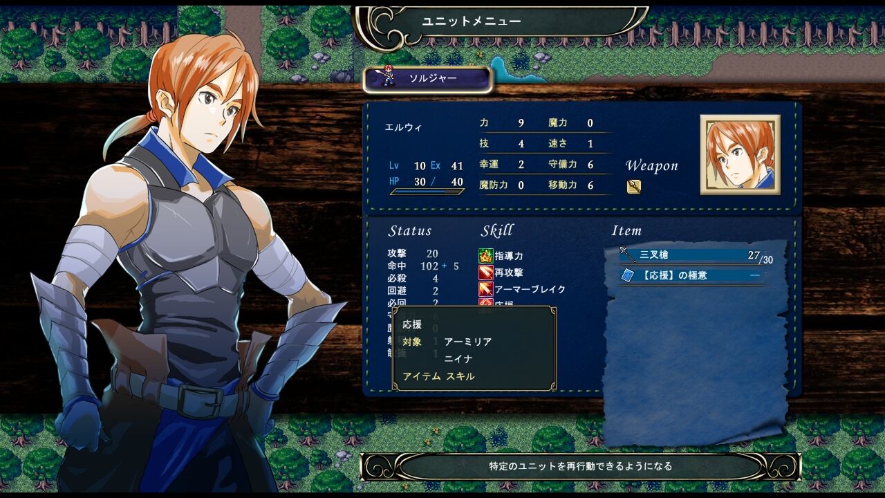 応援はユニット一人を再行動させる超便利スキルです。習得するのをお忘れなく。