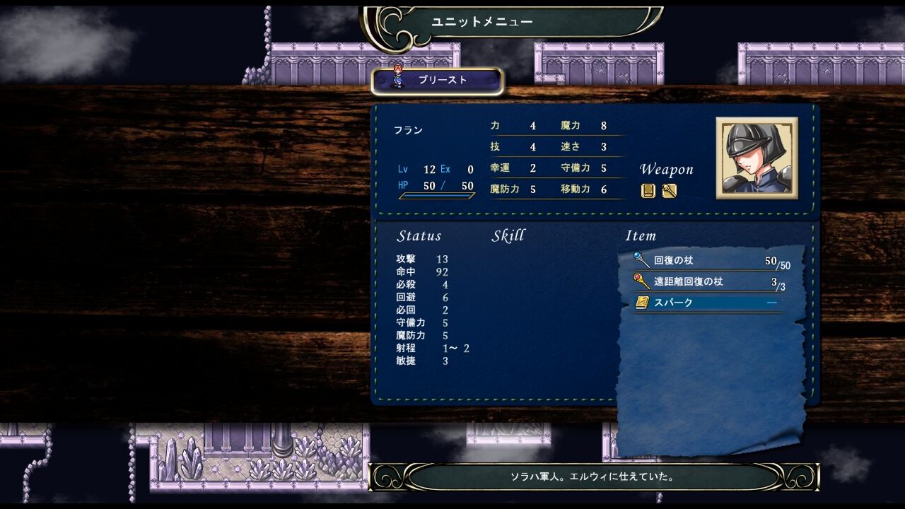 現状エルウィが少し弱い点と、南西→東から増援が来る点に注意してください。