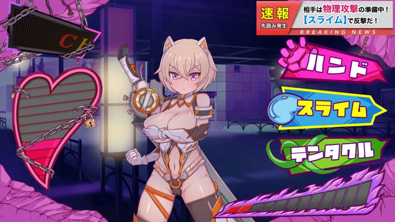 3種類のエロ攻撃「ハンド・スライム・テンタクル」を選択するだけの「完全な運ゲー」ですが、