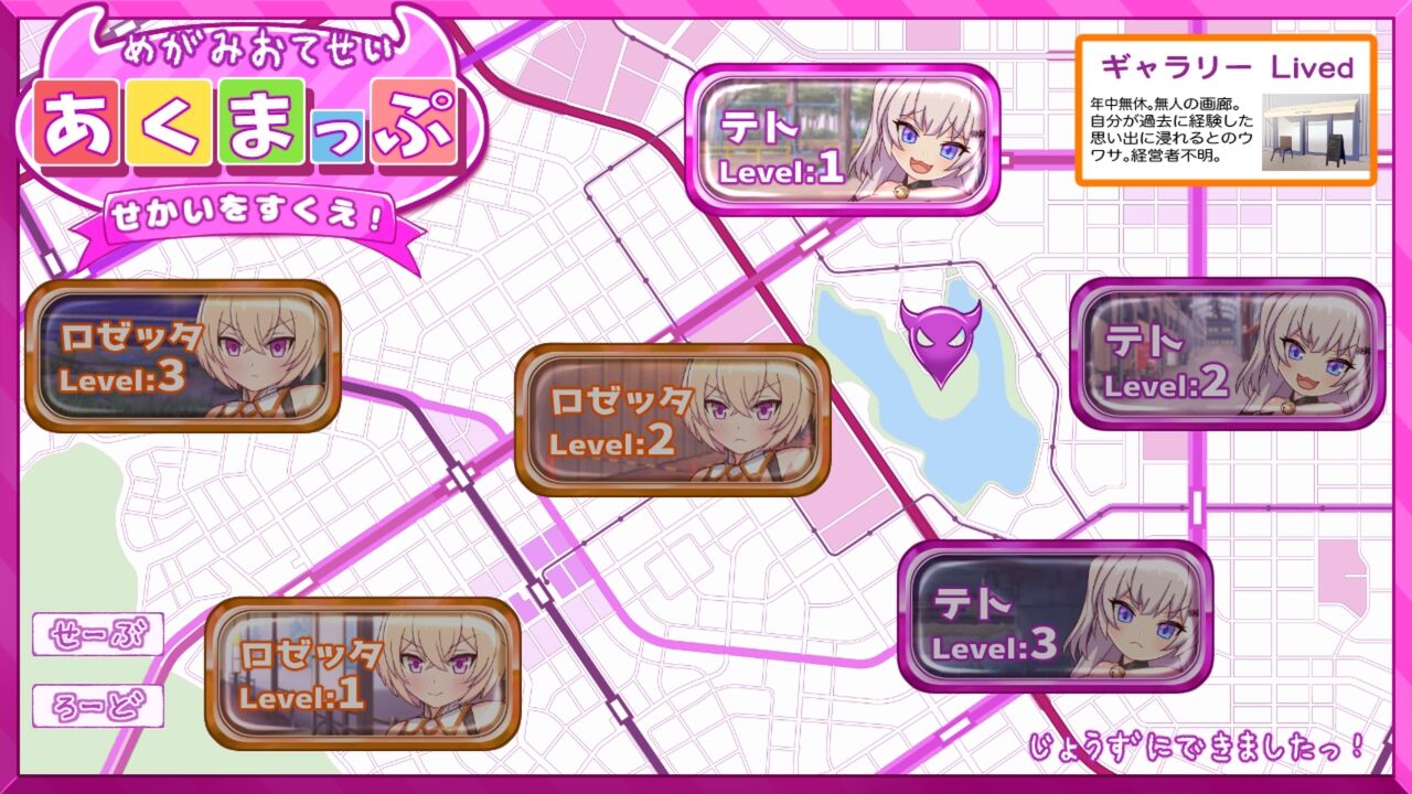 めがみとの会話イベント後、マップ画面に移動します。ここからセーブ可能です。