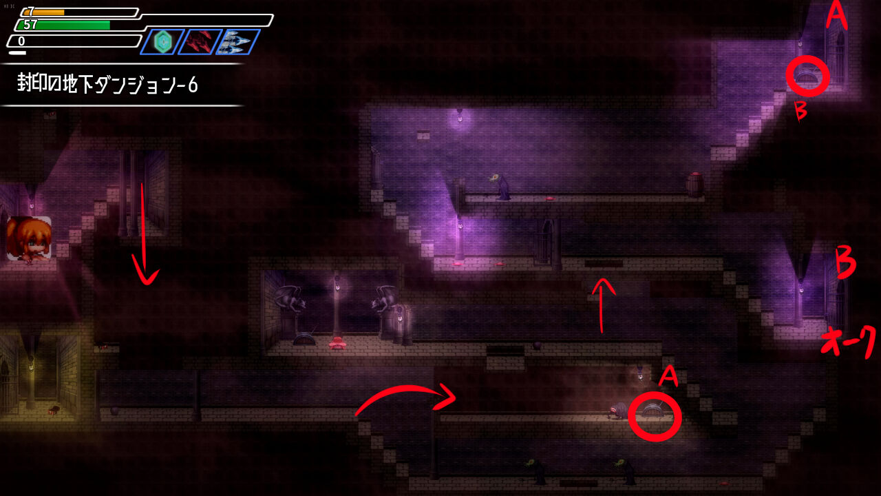 アップデートが入り、封印の地下ダンジョン-その12の右下に扉が増えました。
