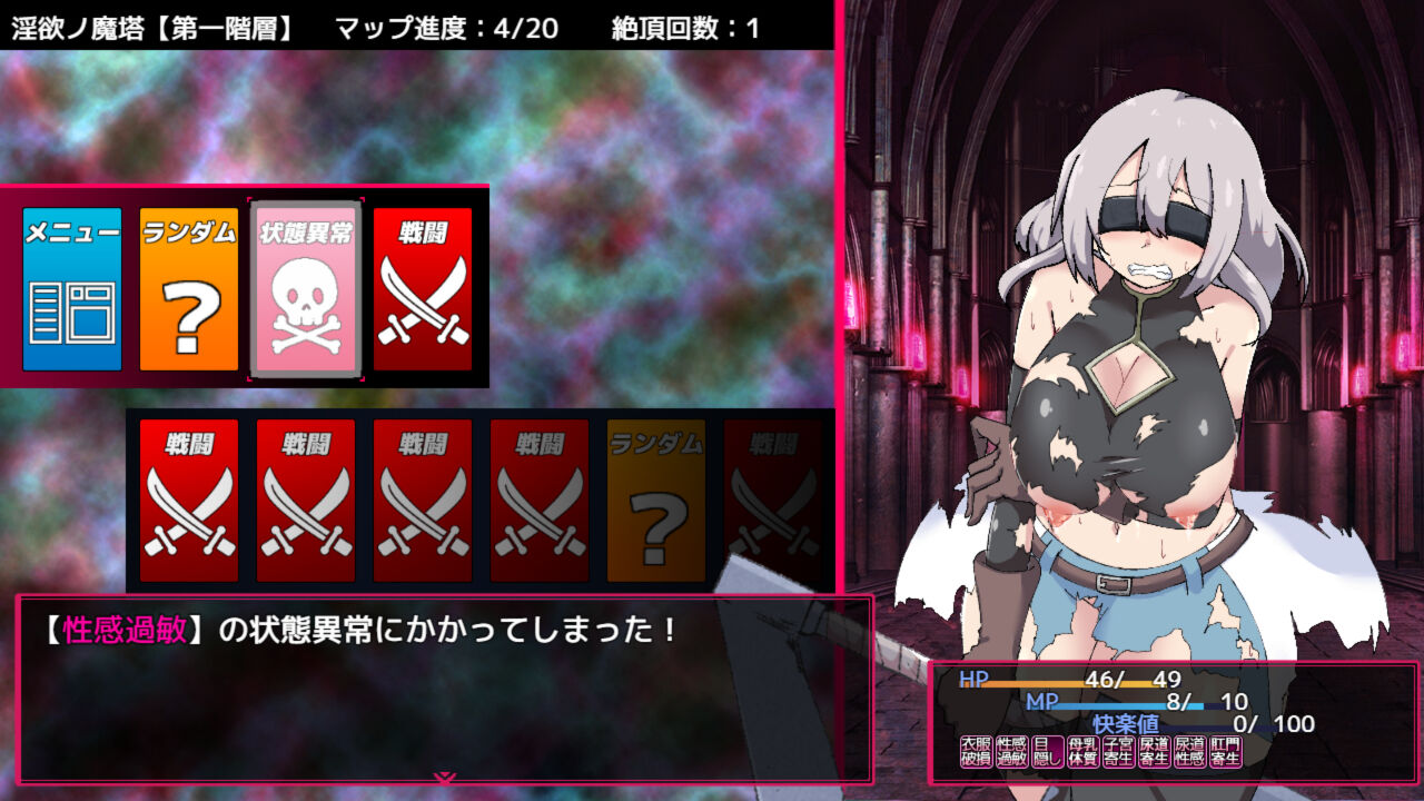2人のヒロインを使い分け、全4階層からなる『淫欲ノ魔塔』を攻略していきます。