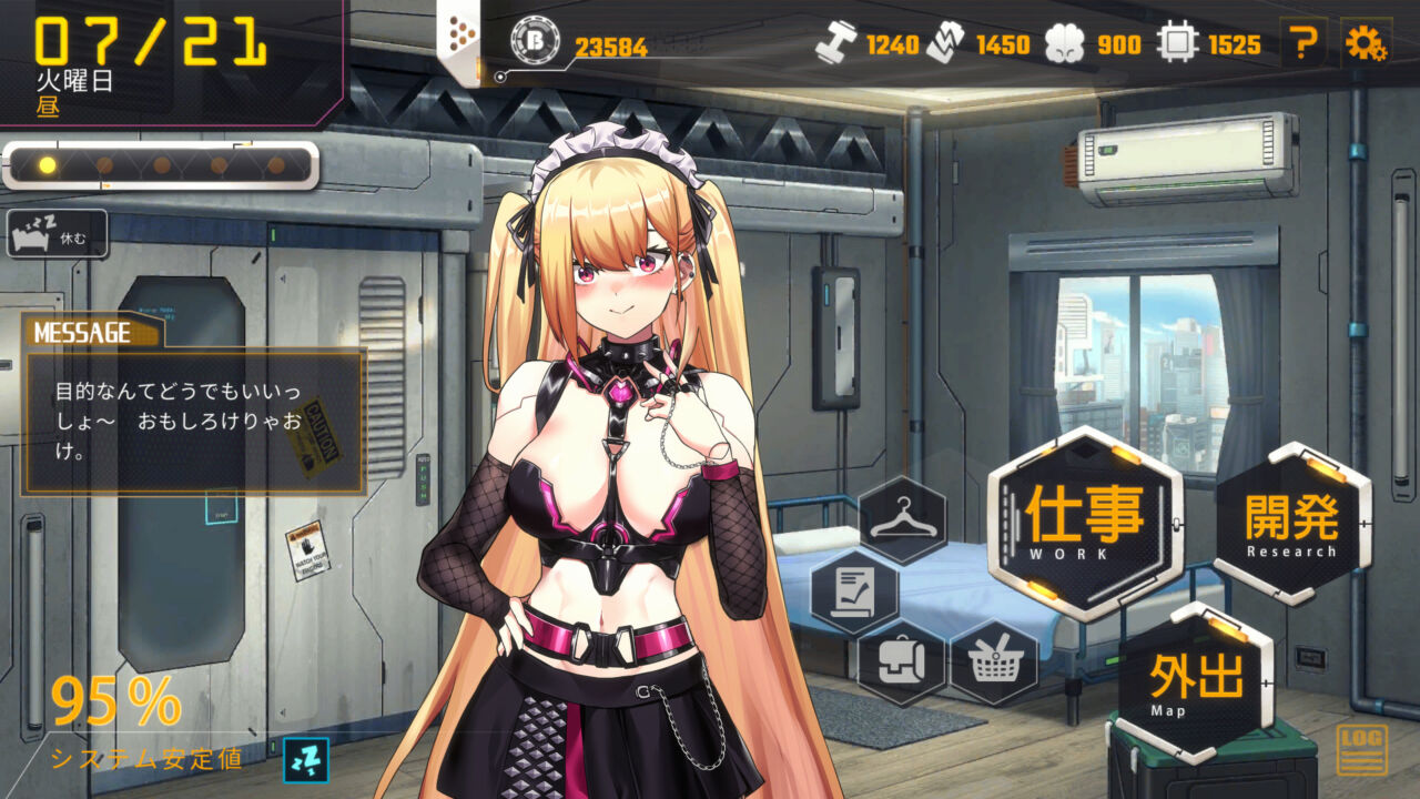 3つの仕事別にルートが分かれており、パーツを開発してロボ娘の性能を上げていきます。