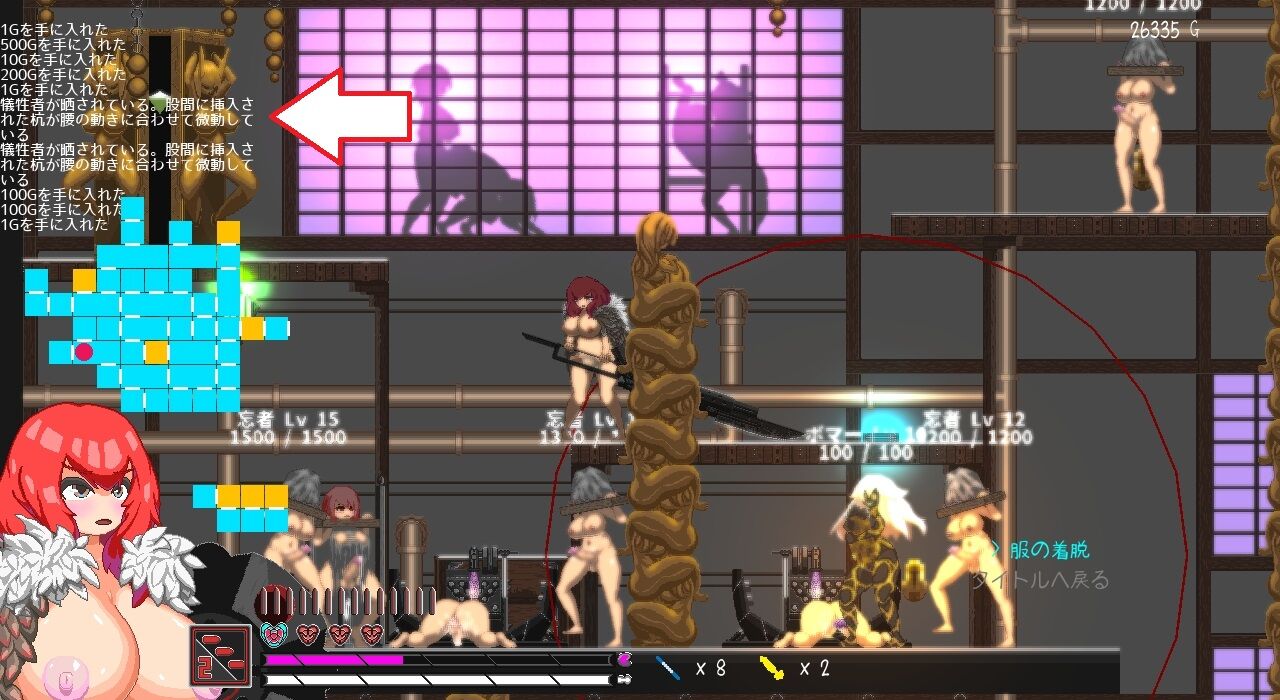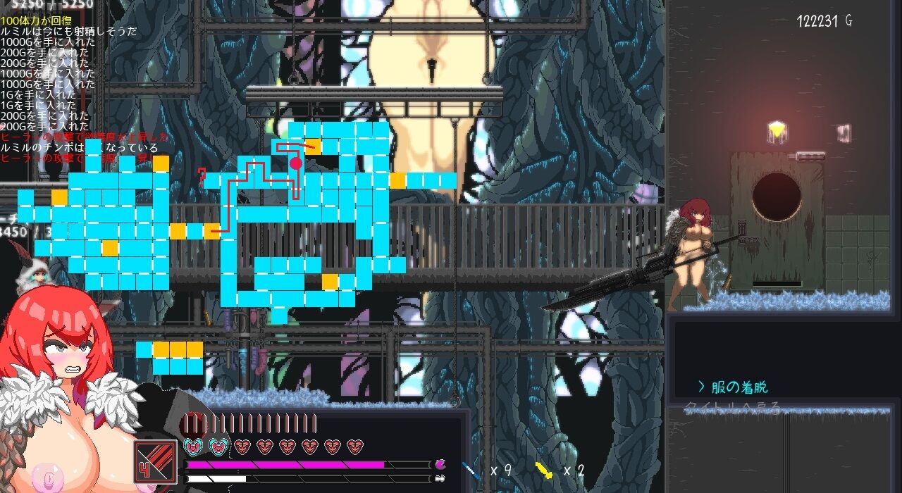 絞縄オブジェは体力が回復がされ、触手ぽい穴から「ショートカット地点」に入れます。