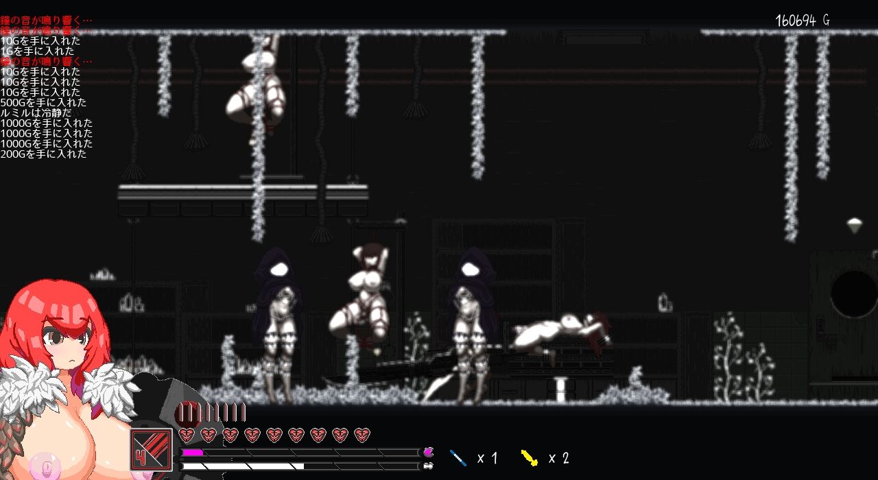 赤い紐で縛られた女性を横切ると、ポーンという音が鳴って【画面が暗転】します。