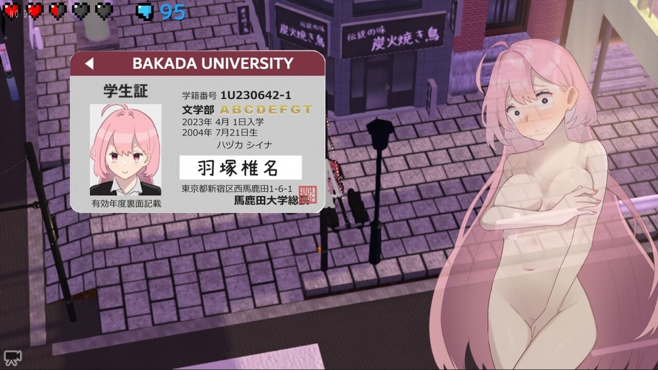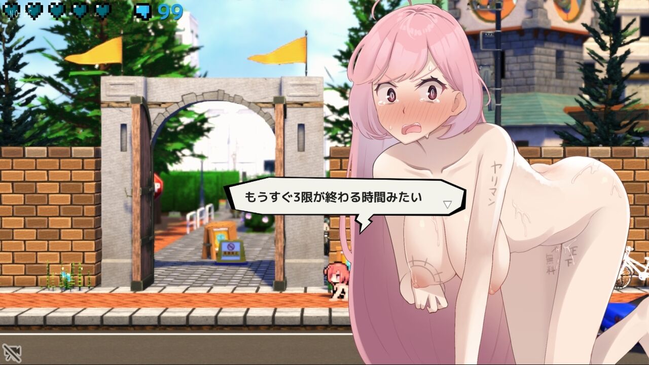 駅前で素っ裸で寝ていた椎名ちゃんが全裸のままお家に帰るスニーキングゲームです。
