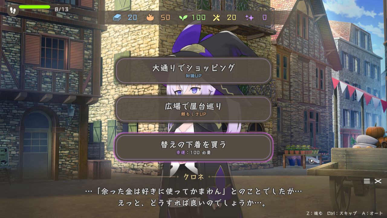 ゲーム部分の攻略で難しい要素はありませんが、ステータスの変動や魔力を集めていく過程から、