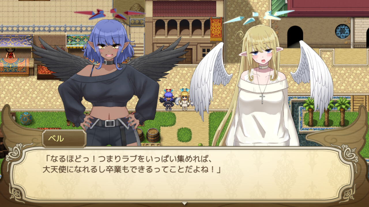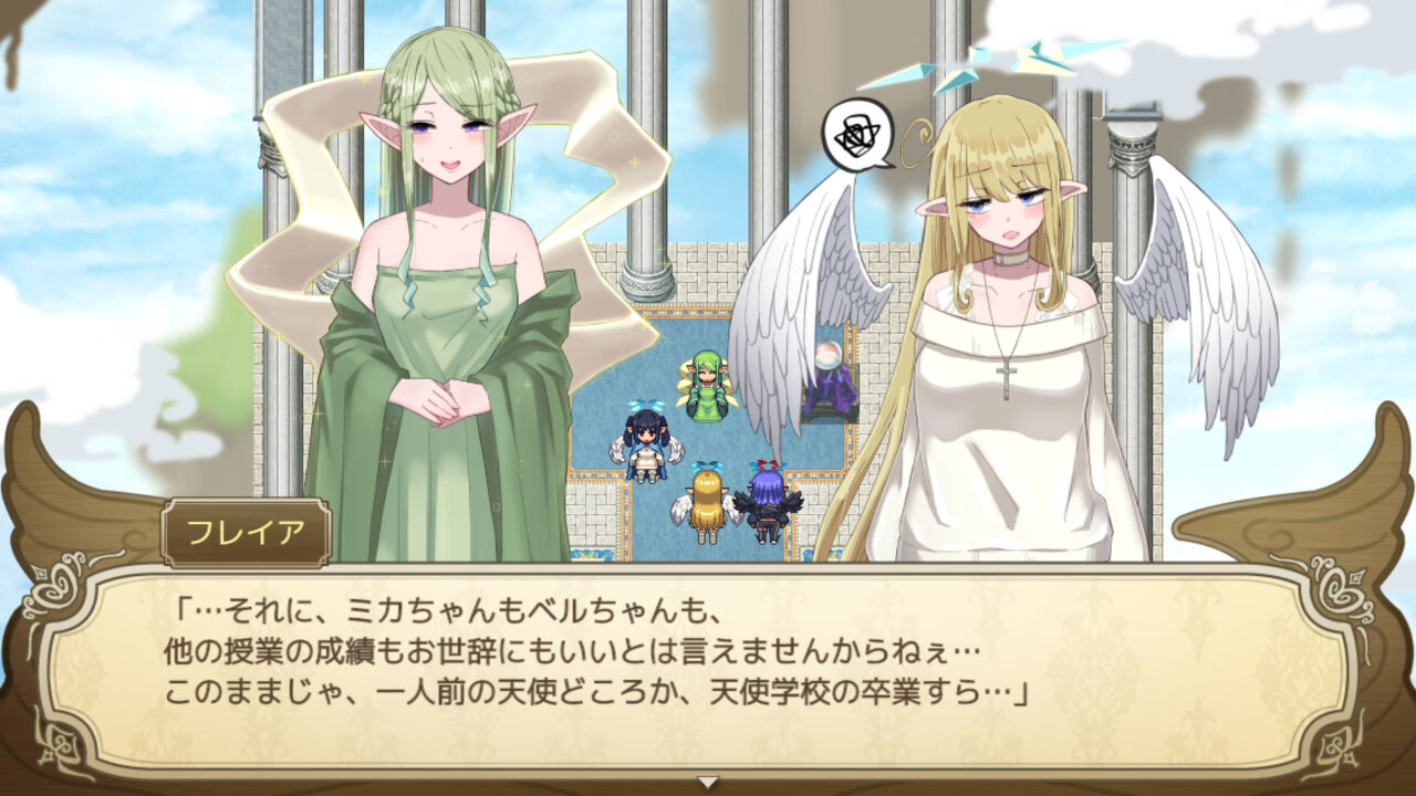 A.見習い天使たちが地上の人間を淫らに導く『ダウナー天使 × イベント探索RPG』作品です。