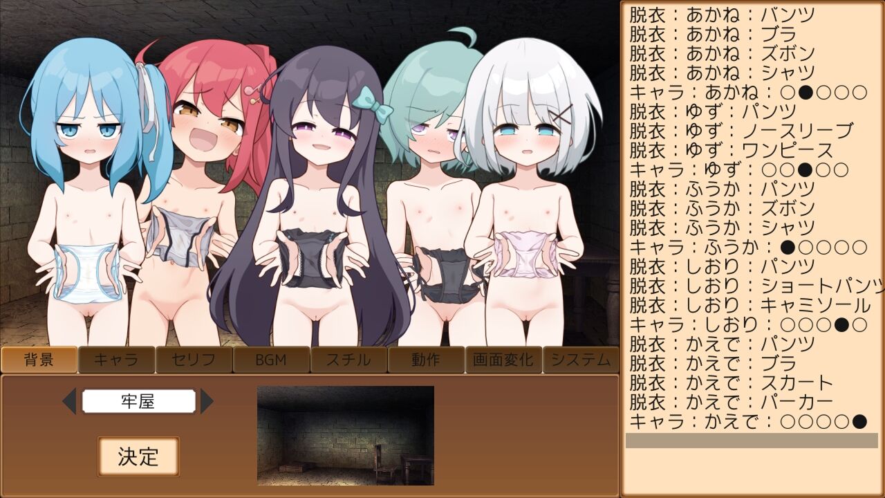 脱衣状態は立ち絵にも反映されるため、全員を下着姿にしてシナリオを愉しむのもオススメですよ!