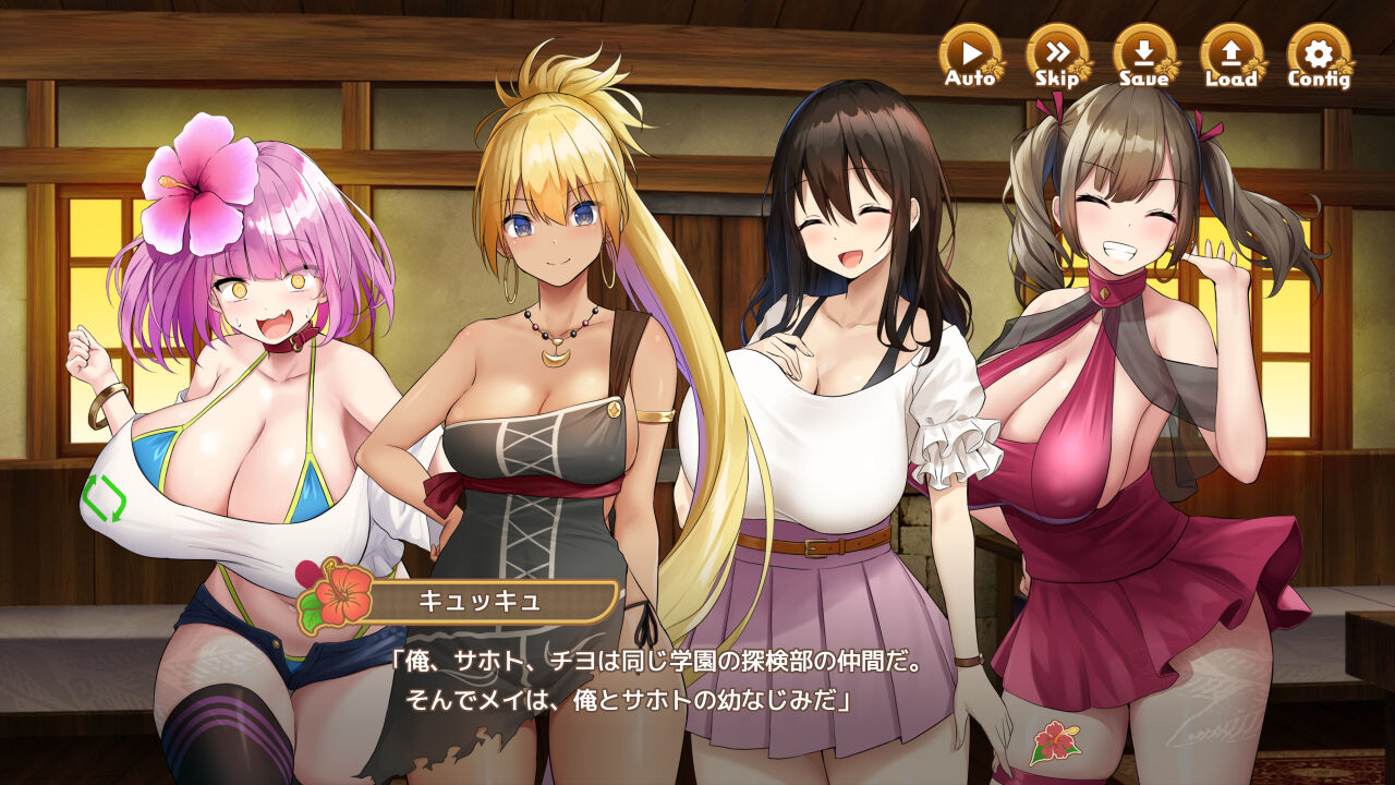 ヒロインは5名(同じ探検部3、原住民1、観光客1)です。全員を独占できるハーレムが魅力的!