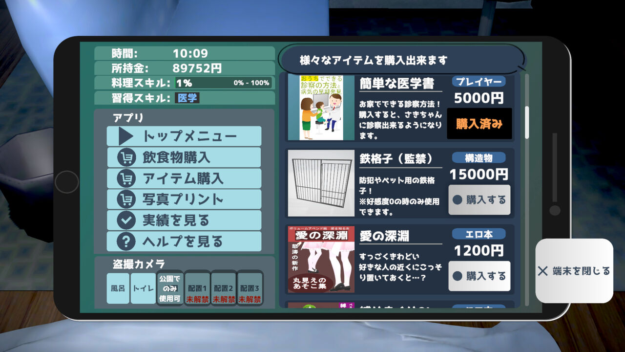 | 隠しカメラを購入する | 9000円 | アイテム「隠しカメラ」を購入します。 |