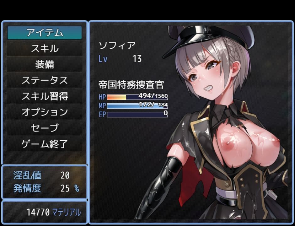 一部の状態異常「衣服破損、粘液状態」は立ち絵にも影響し、多彩なエロカットインにも注目です。